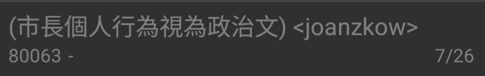 → NXT0614 : 好扯喔 為什麼市長被停職不能po啊 這關乎所有市民吧 07/26 13:49