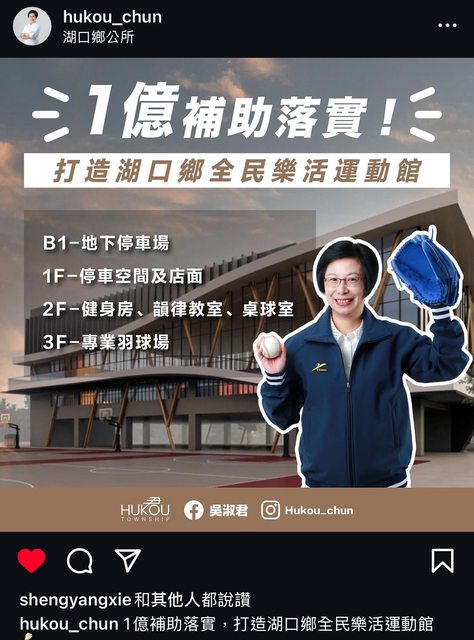 標題[情報] 湖口鄉獲體育署補助 將建樂活運動館