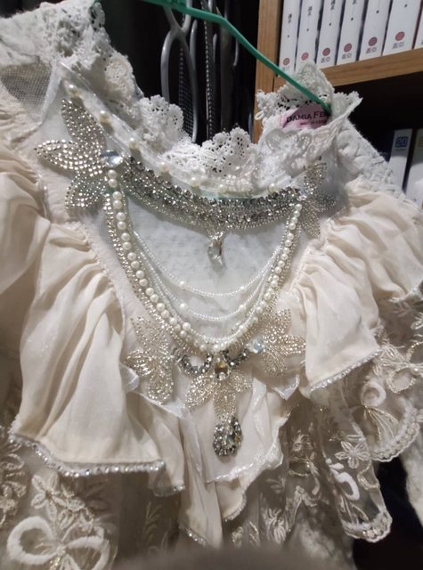 a2.M-L,正韓上衣,重工蕾絲釘珠,高彈性,不好駕馭