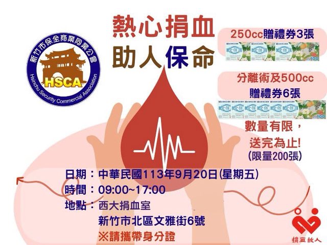: 活動地點:新竹市文雅街6號 (西大捐血室)