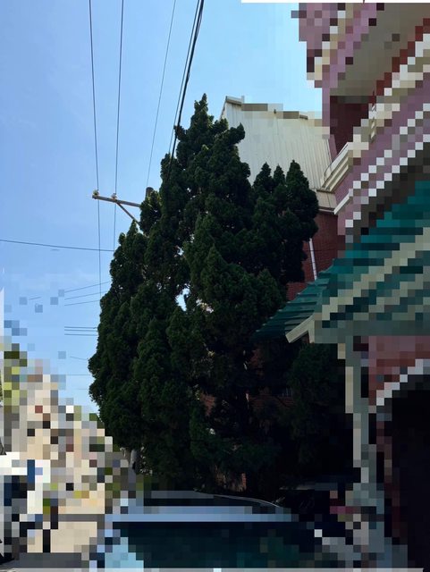 : 樹幹的部分跟欄杆有點卡到 另外樹高較高有碰到電線 情況可參考照片