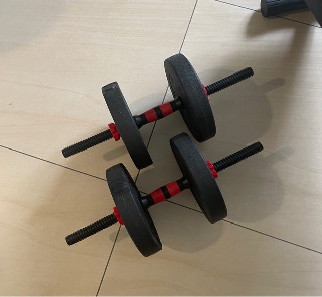 啞鈴還有其他槓片,總重約是20公斤還是30公斤組別, 都是散裝沒有盒子裝
