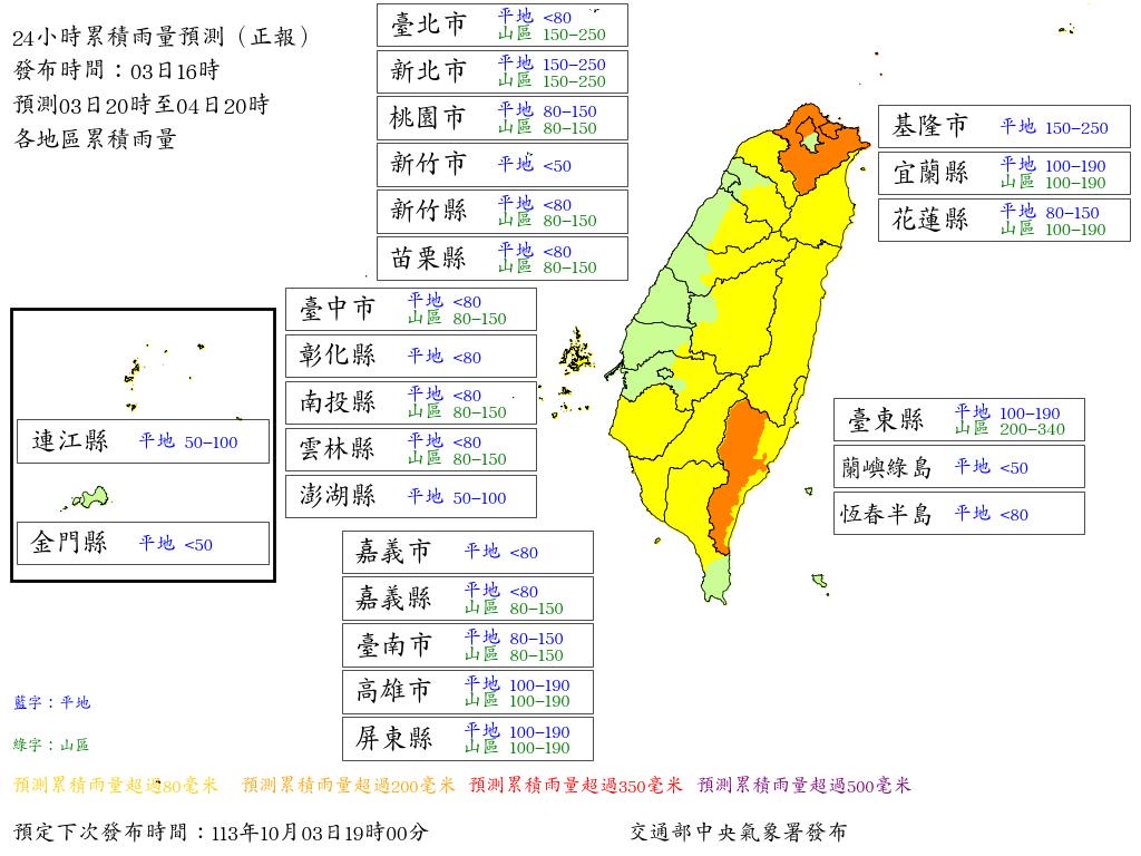 → trieau : 中午登陸後有機會降為低氣壓,就不會有預報,縣市 10/03 13:27