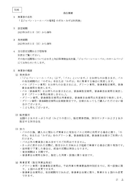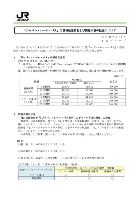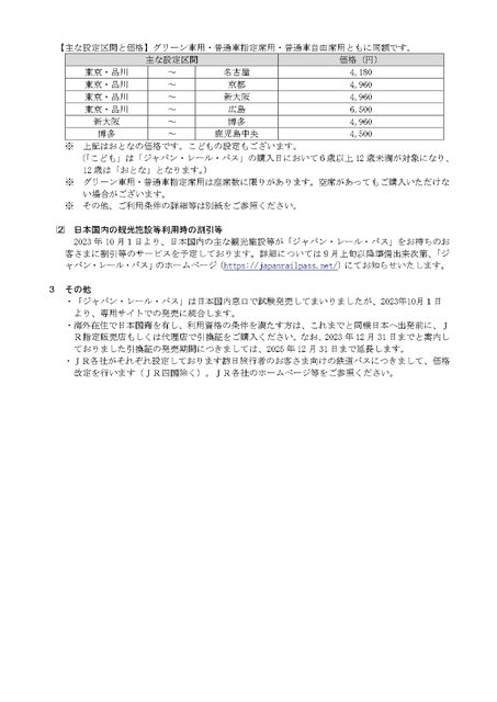「ジャパン・レール・パス」の価格改定日および商品内容の拡充について[PDF/319KB]