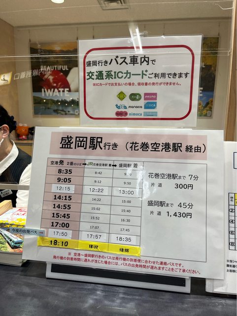 搭巴士到JR花卷空港站約需7分鐘,票價300日圓(兒童150日圓)、到JR盛岡站則為45分
