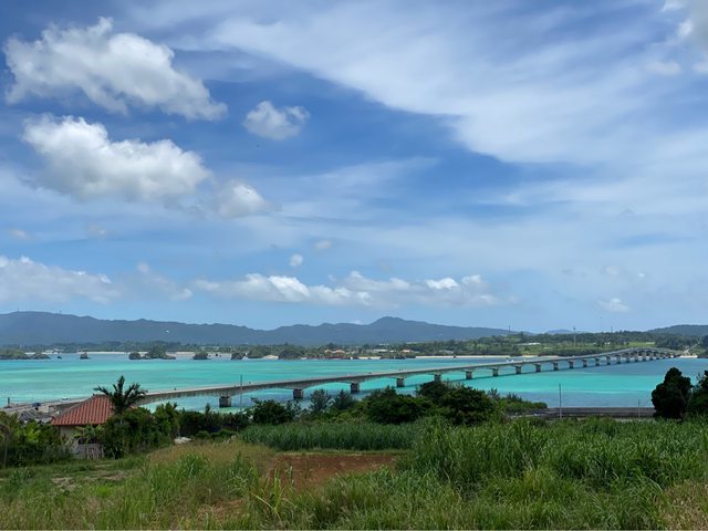 一早直衝古宇利島,在橋的兩端拍拍照,就去買蝦蝦飯外帶,再到島上的海景咖啡廳「L