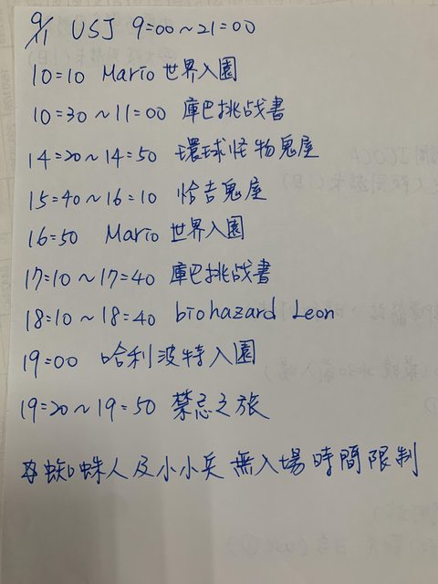 環球門票為1.5日券,9/10下午3點可入場,9/11為整日