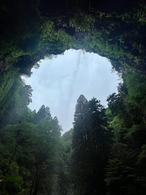 。壇鏡神社的社殿就建在裡面,而壇鏡瀑布也成為「裏見瀑布」。粗面岩節理發達,因此