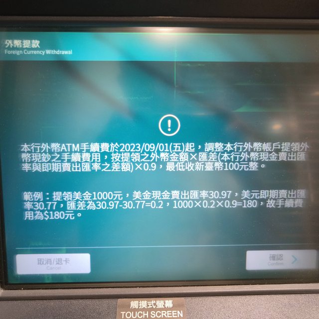 推 creation0304: 台新ATM外幣是 收10009/01 21:51