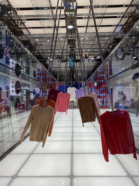 銀座UQ入口,鐘擺式的衣服還蠻有特色的