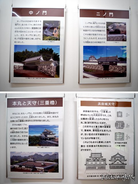 館內有浜田城天守(三重櫓)的模型,呈現正方形的浜田城天守屬於望樓式建築,並沒有華