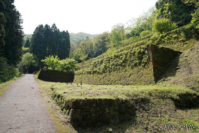 往內走沒多遠,就可以看到長著青苔相當翠綠的多段石垣,這裡就是石見銀山常出現在雜