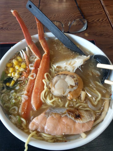 我吃到五塊有肉的螃蟹、兩塊鮭魚、一塊扇貝。