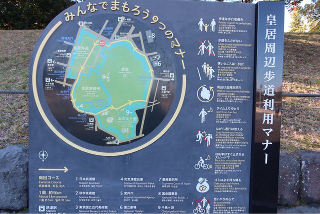 所謂皇居慢跑指的是繞行皇居外圍慢跑一圈的路線,長度約5公里。這條路線的特色除圍