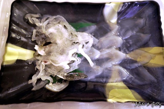 首先是河豚刺身的部分,從販賣機購買時是冷凍的狀態,但回到新山口就自然解凍了,剛