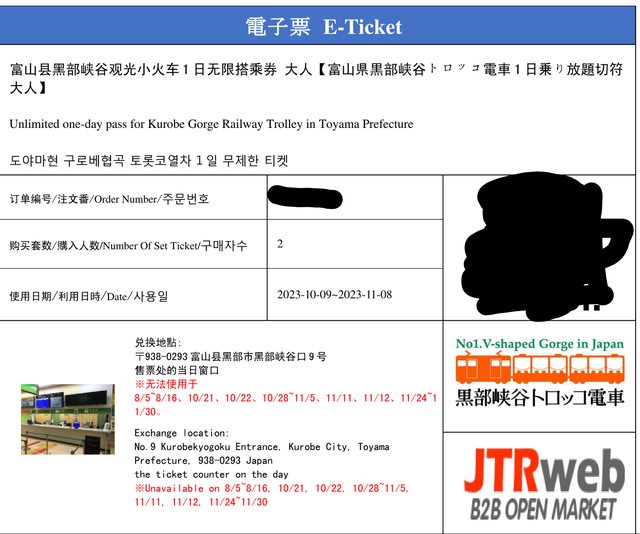 標題[讓售] 黒部峽谷鐵道・觀光小火車無限乘車券*2