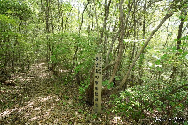 繼續往太閣岩走,可以看到一塊木牌寫著秀吉公軍馬繫留之地,是右方的山谷間,看了一