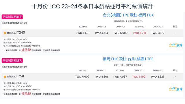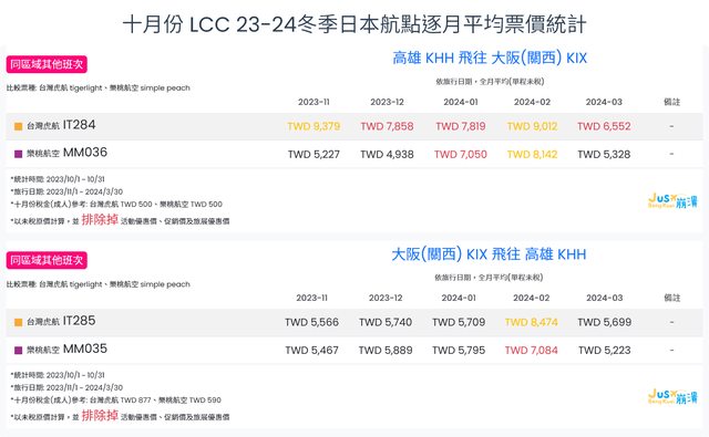 標題[分享] 10月份 LCC 23冬逐月平均票價統計