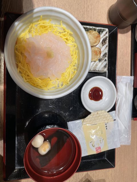 到了富山站,我們吃了鼎鼎大名的白蝦亭,生的炸的都超好吃,唯一的遺憾是下次想點蝦多多的那個。他的蝦餅也超好吃讓我直接在隔壁買兩個750的13片。