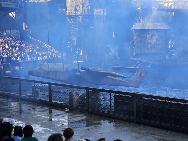 那時旁邊的水世界表演剛好快開了,於是就加入了排隊的隊伍。