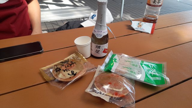 倒是那天天氣非常好 坐在旁邊椅子喝酒吹海風 舒服 旁邊阿姨要推銷還送了幾片魚骨仙貝