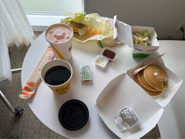 今天早上在飯店對面的麥當勞買早餐,老婆說要吃鬆餅漢堡,我只聽了前面,結果買了鬆