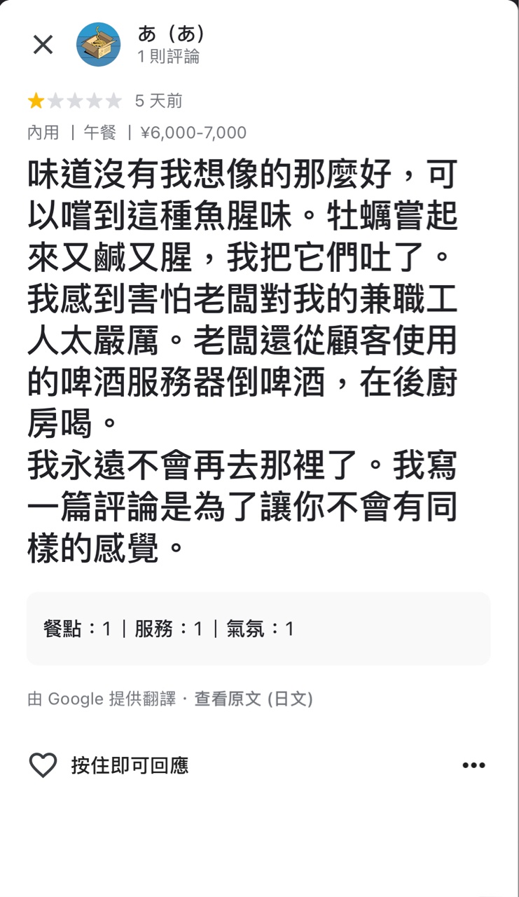 → whocare96 : 無法接受,我自帶手機翻譯,請只會日文的員工來服 07/14 12:53