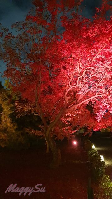 晚上我們再到二条城觀賞「NAKED FLOWERS 2023 秋」夜楓光雕秀,雖然來過京都好幾次,但這是我第一次來二条城,而且想說爸爸已經看過永觀堂的夜楓了,這次就來點不一樣的夜楓。不過或許是白天光明寺的楓葉太美了吧,我們三人都覺得還是早上的楓葉略勝一籌。