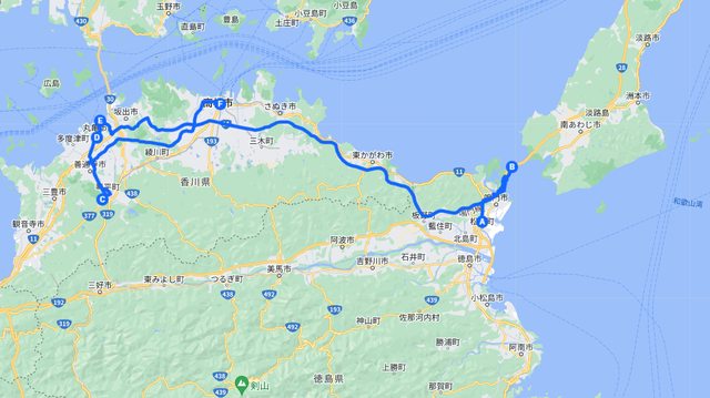 之後我遇到了難題,要直接走高速公路經香川再到徳島,還是沿著濱海的國道一路走到