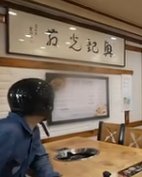 章宇用背影,模仿全會長吃東西的樣子