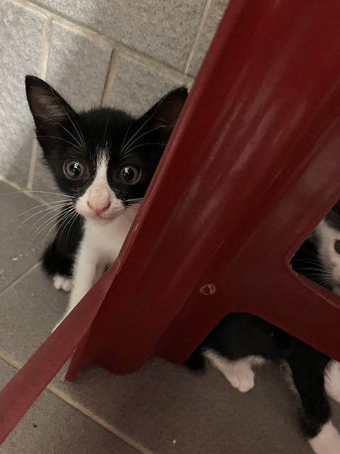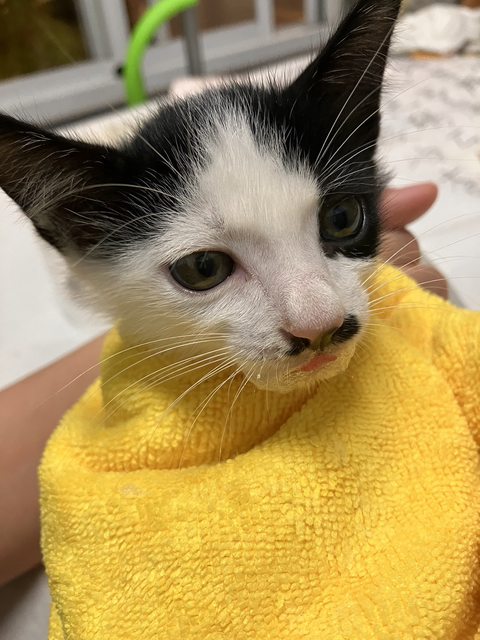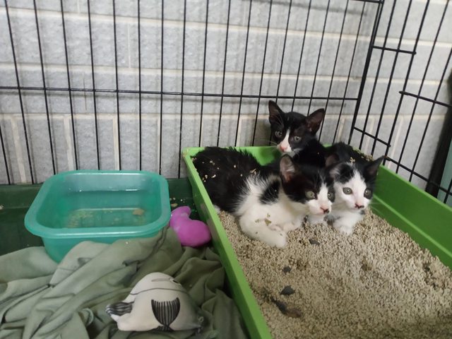 三隻小貓都是同胎,原本共有四隻;最凶悍的老大(依發現順序排行),沒幾天就被一名美女姐姐收養了。