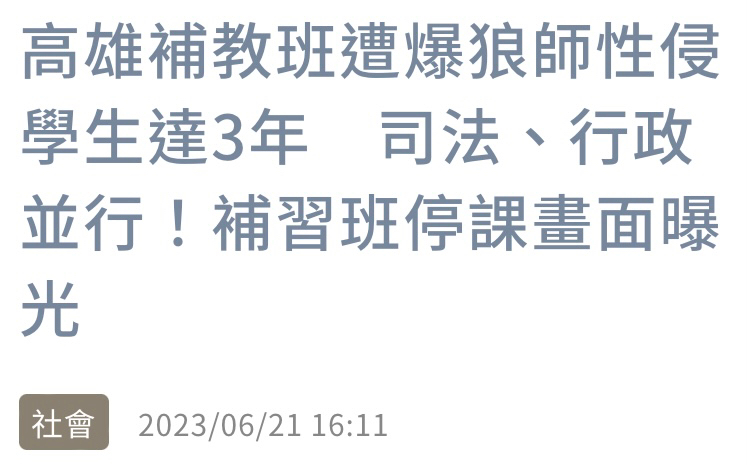 推 wake00005 : 請說出是誰,哪家補習班?難保沒更多孩子受害 06/21 15:49