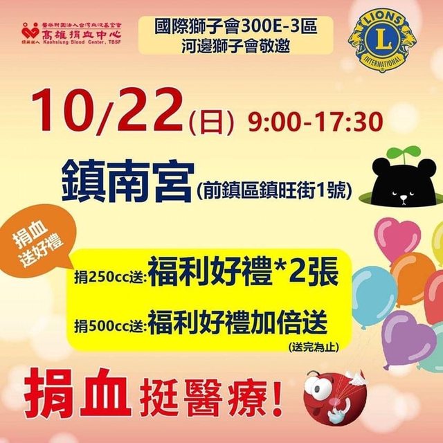 標題[閒聊] 10/22前鎮捐血送200全聯禮券+好禮