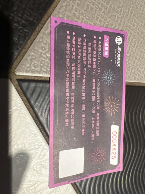 物品名稱:義大世界跨年星光趴門票一張