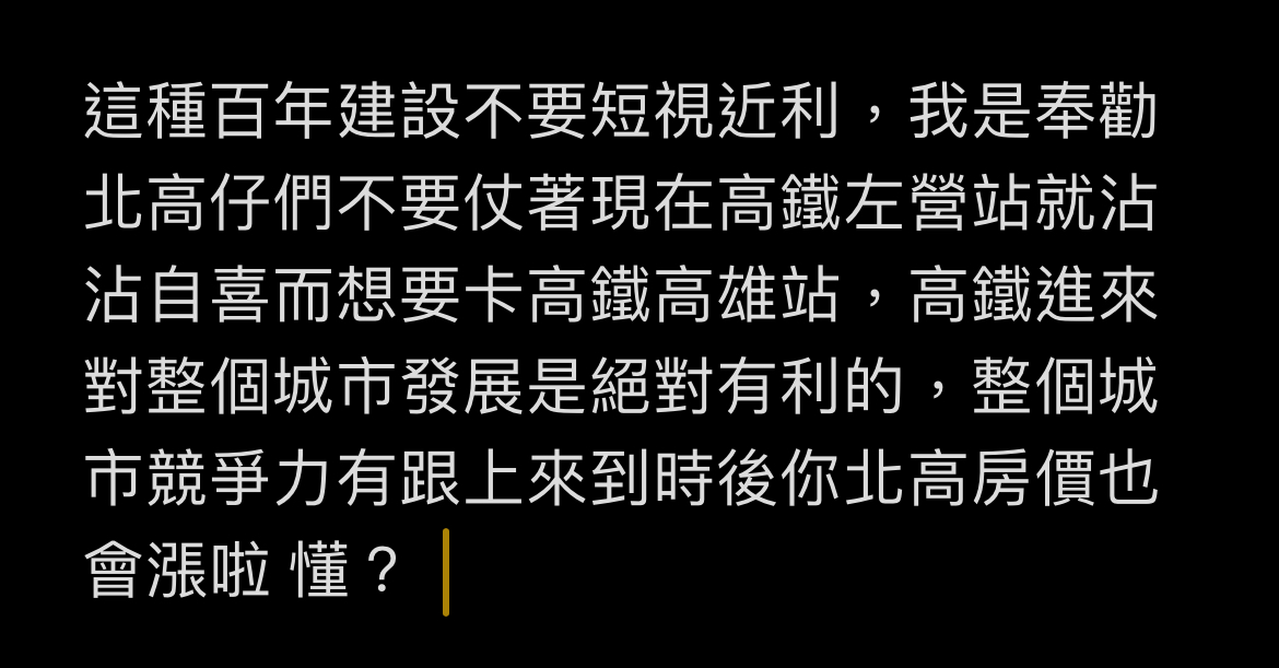 nucleargod : 高鐵要延一定是先延高雄站,不然就先不要延 07/09 02:38