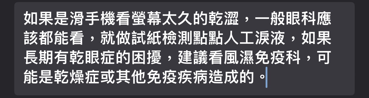 在網路上搜尋不到太多相關資料 想上來問問高雄有沒有推薦的乾眼症治療專科診所或醫生? 謝謝 --