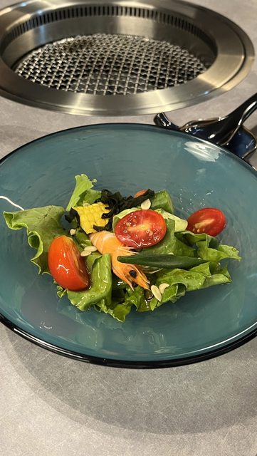 肉質很軟嫩,跟之前去吃的日月燒肉差好多,明燒肉的牛舌牛小排我咬不爛但是這間的肉跟海鮮都很好吃!!幾乎都不用沾醬我甚至沒有沾鹽就能吃到肉質的新鮮度。