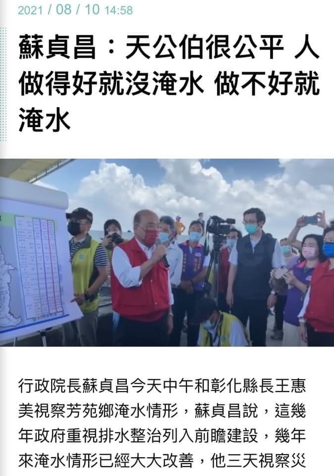 推 wilson4969 : 蘇貞昌:天公伯很公平 人做得好就沒淹水 做不好就 07/25 14:07