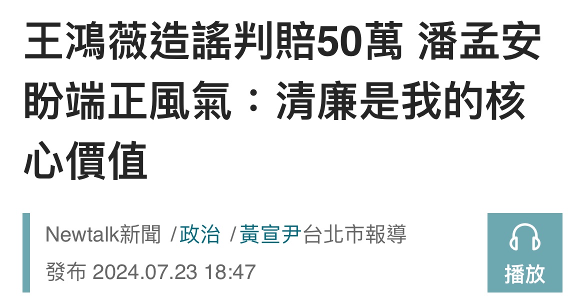 smartmichael: 王鴻薇敗訴判賠50萬 07/27 01:09