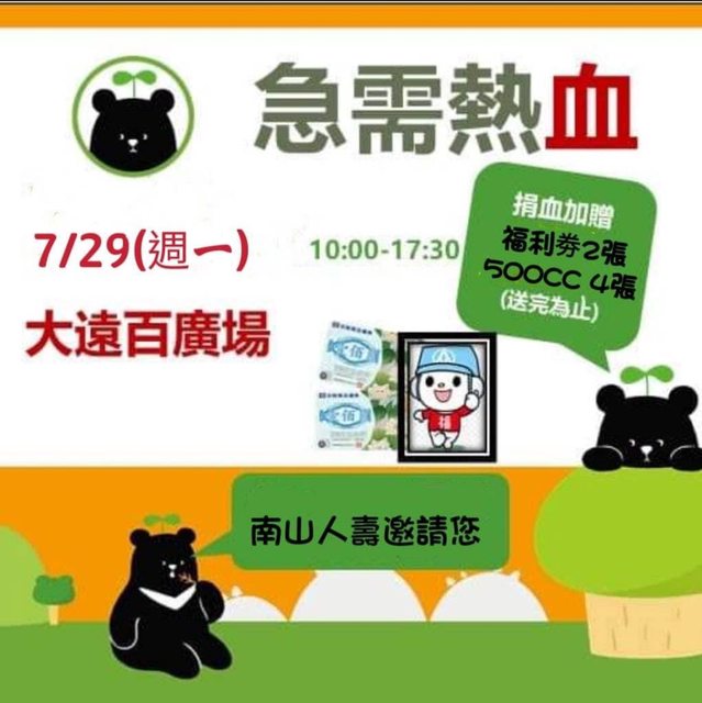 標題[閒聊] 7/27、7/29禮品豐富捐血場次(全聯200