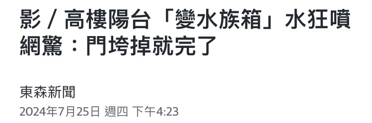 danielrobert: 高樓陽台我看新聞那高度應該是二、三樓而已,低樓 07/27 19:35