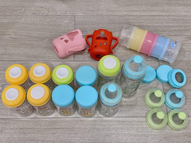 奶瓶皆無奶嘴頭。