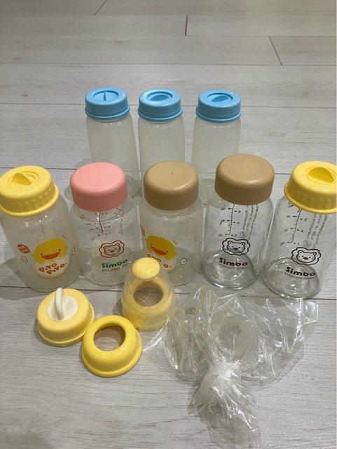 4. 各式集乳瓶:有小獅王、黃色小鴨。另附三個全新未用的標準口徑奶嘴頭S