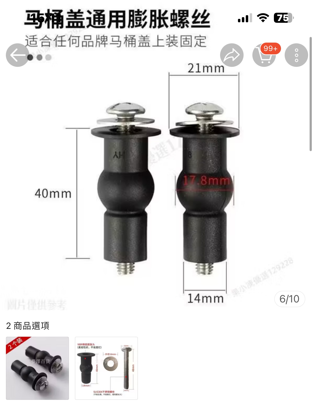 推 cjchang3898 : 舊的膨脹螺絲想辦法夾出來,再去水電行買兩顆膨脹 08/02 15:18