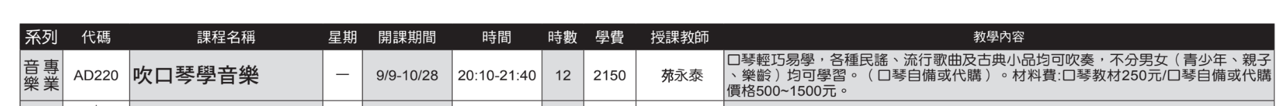 → tnil : 高雄學院前金分班 有口琴的課程 08/12 22:16