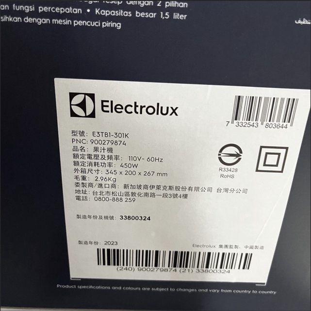 物品名稱:Electrolux伊萊克斯 果汁機(全新)