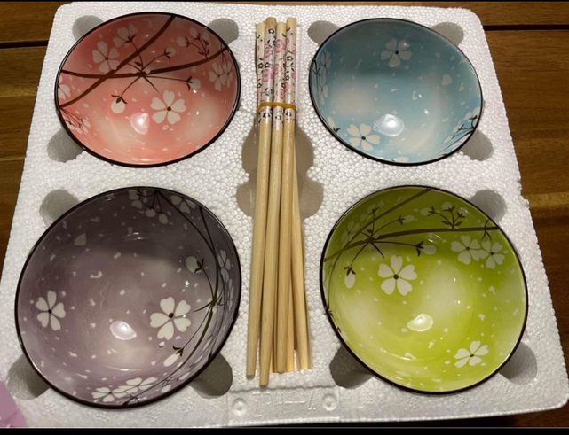 2. (洽中)全新四色陶瓷碗+筷 碗4筷