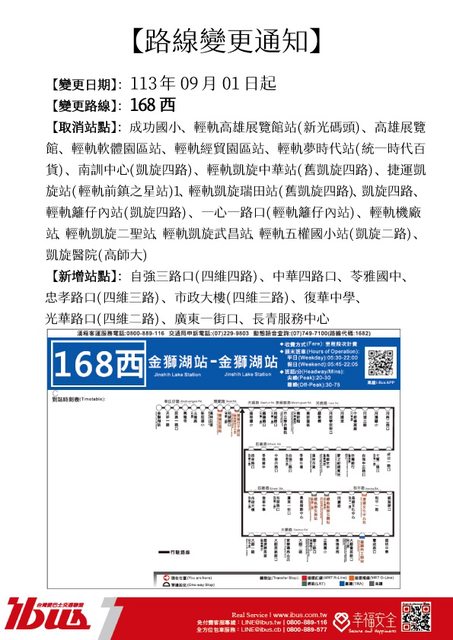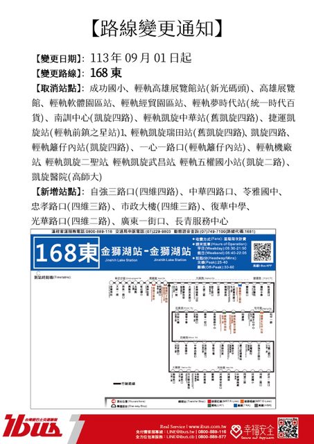 標題[情報] 168路公車於9/1起調整路線