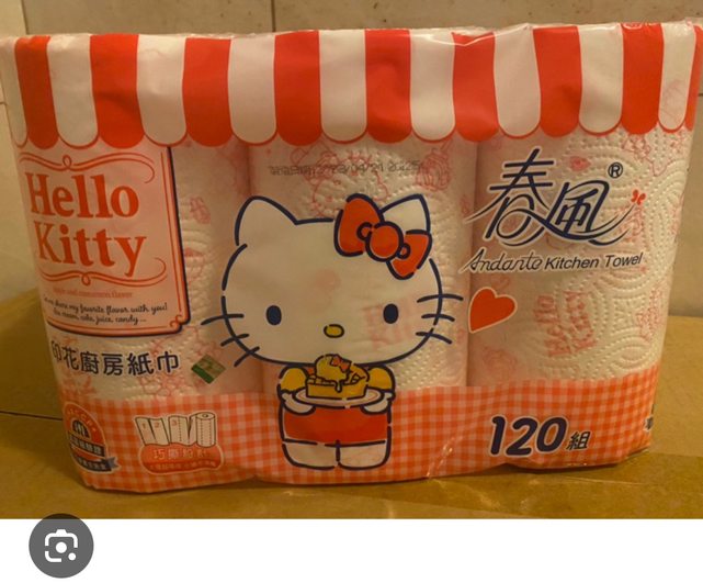 Hello kitty圖案優先,沒有的話就一般春風廚紙巾,如下圖,感謝。