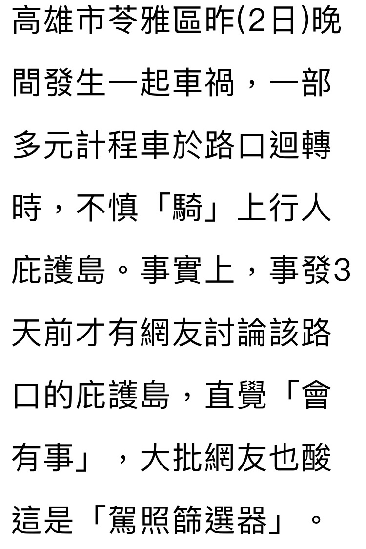噓 Willdododo : 很明顯是垃圾駕駛的問題 庇護島也能撞 09/04 16:33